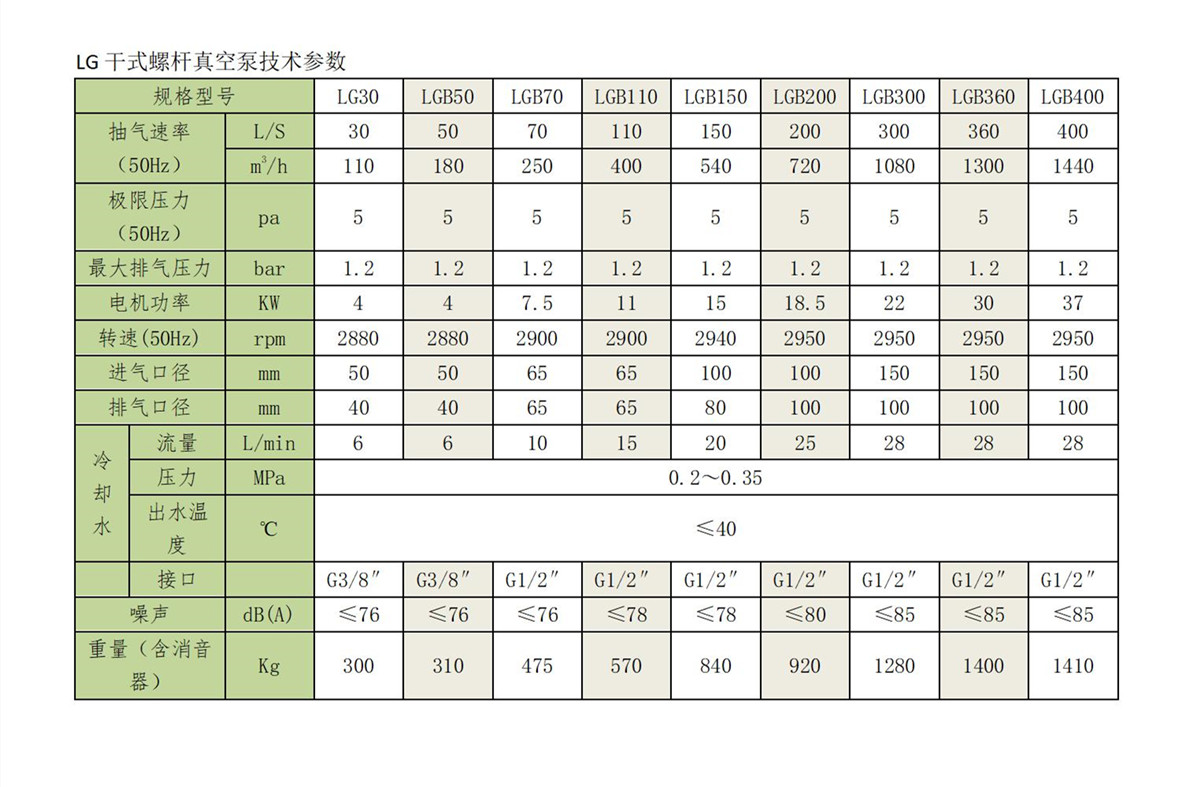LGB干式螺桿真空泵技術參數(shù)